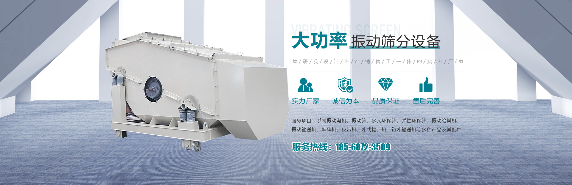 - 主要產(chǎn)品有系列振動電機(jī)、振動篩、多元環(huán)保篩、彈性環(huán)保篩、振動給料機(jī)、振動輸送機(jī)、破碎機(jī)、皮帶機(jī)、斗式提升機(jī)、鏈斗輸送機(jī)等多種產(chǎn)品